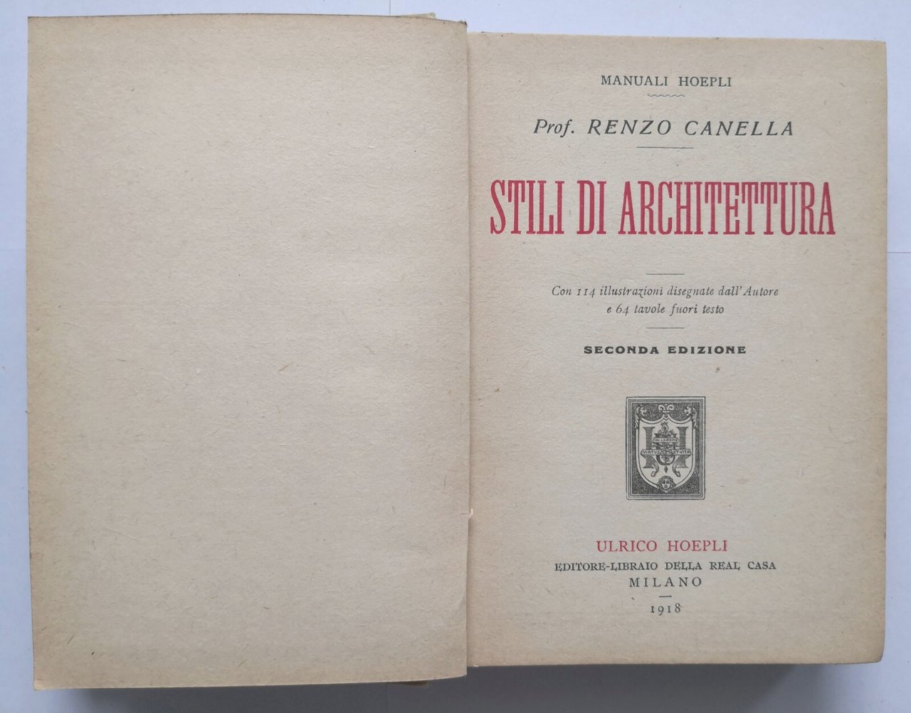 STILI DI ARCHITETTURA Renzo Canella 1918 Ulrico Hoepli Manuale Libro II edizione