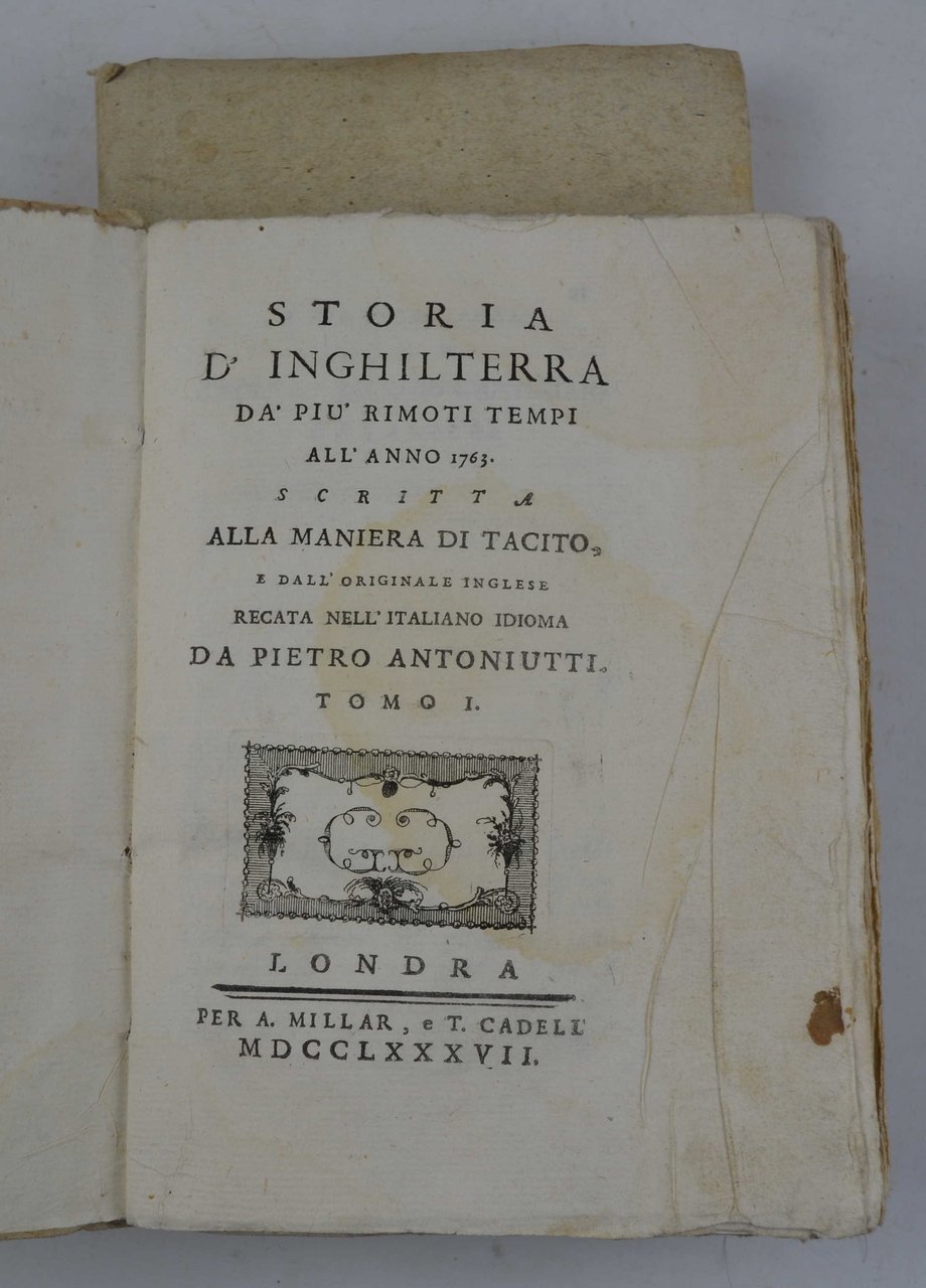 Storia d'Inghilterra da' piu rimoti tempi all'anno 1763. Scritta alla maniera di Tacito, e dall'originale inglese recata nell'italiano idioma da Pietro Antoniutti.