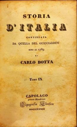 Storia d’Italia continuata da quella del Guicciardini sino al 1789 di Carlo Botta. Tomo IX.