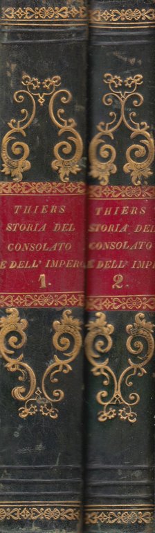 2 Voll. (Cm 26,5 x 18), pp. 757-590, legatura mz pelle con titoli su tassello e fregi in oro al dorso. Antiporta con bella litografia raffigurante Napoleone a cavallo. Curiosa marca tipografica ai frontespizi raffgurante napoleone con le mani dietro la schiena. Edizione, non completa, di questo classico della storia napoleonica. Il tomo secondo presenta una maggior rifilatura del margine esterno che ne determinata una differenza di misura rispetto al volume primo. OTTIMO