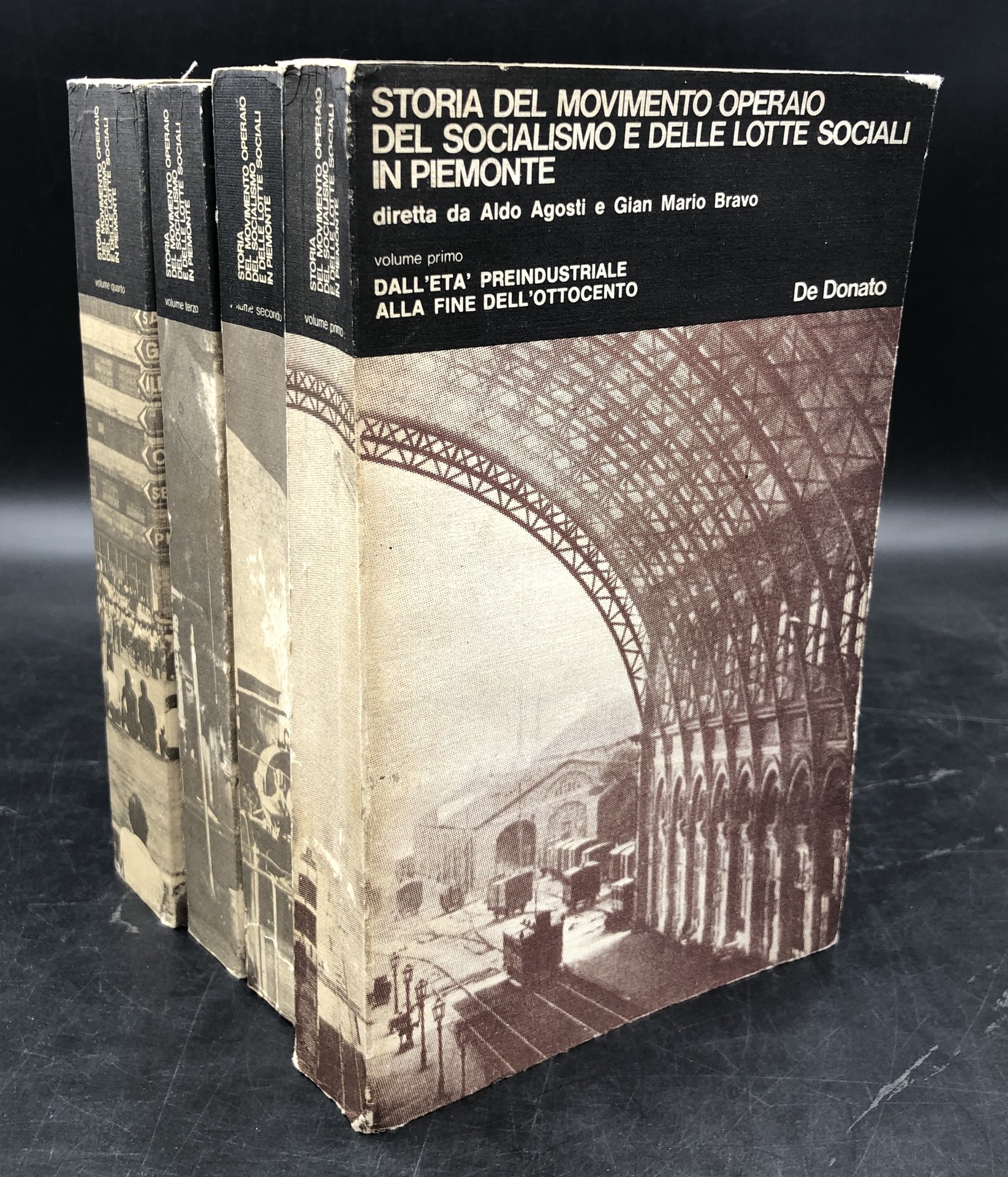 4 spessi volumi in-8° (cm. 21x13), cartoncino leggero edit. a risvoli, ill. 1) Dall'età preindustriale alla fine dell'Ottocento, pp. 556. 2) L'età giolittiana. La guerra e il dopoguerra, pp. 562, pp. 562, (6), pp. 509, (11); pp. 760, (8). Saggi di A. Agosti, S. Soave, P. Bresso, M. Larizza - Lolli, S. Lunadei, C. Dellavalle, C. Pogliano, G. Sapelli, L. Passerini. Traccia lieve di gora e firma 'aooartenenza solo al prino, volume, ma i 4 voll. sono solidi e compatti. L'opera completa in 4 volumi