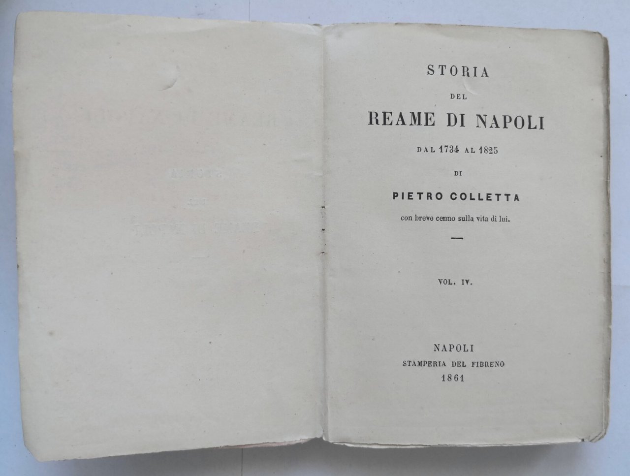 STORIA DEL REAME DI NAPOLI DAL 1734 AL 1825 Pietro Colletta 4 volumi 1861 libro