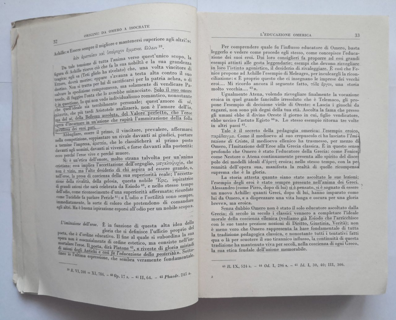 STORIA DELL'EDUCAZIONE NELL'ANTICHITÀ di Marrou 1950 Editrice Studium Libro