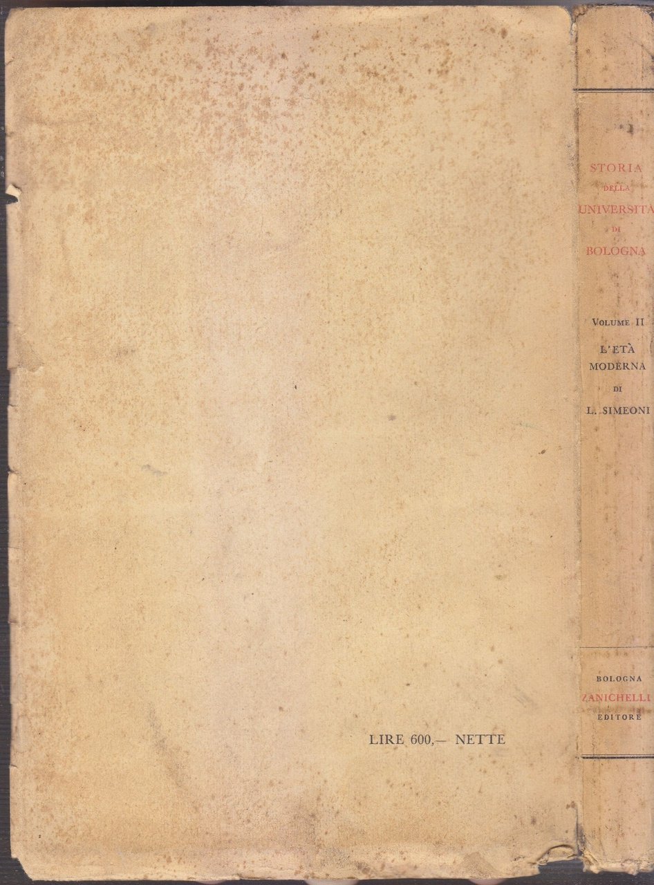STORIA DELL'UNIVERSITÀ DI BOLOGNA Volume II L'età moderna (1500-1888) di Luigi Simeoni.