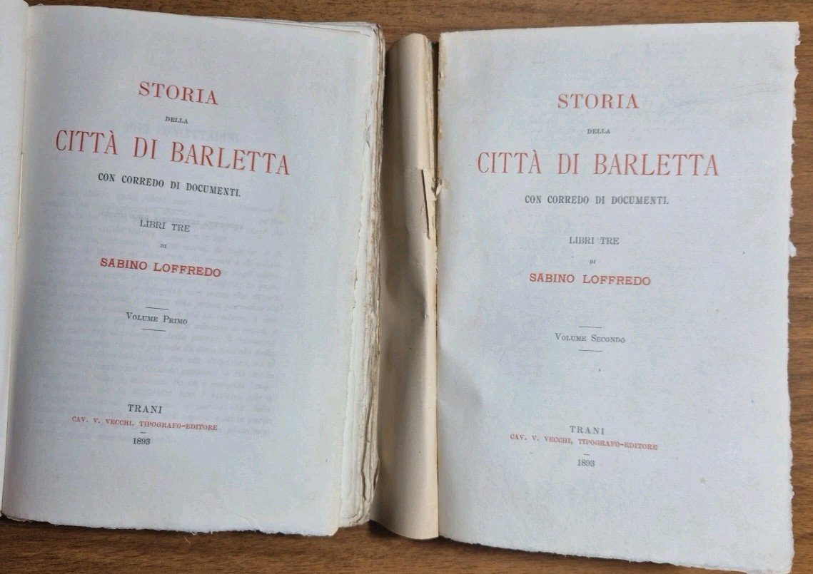 STORIA DELLA CITTÀ DI BARLETTA di Sabino Loffredo 2 volumi completo 1893 Libro