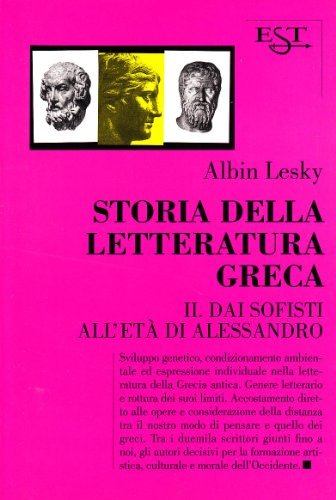 Lesky, Albin Storia della letteratura greca. Dai sofisti all'Età di Alessandro (Vol. 2). , Il Saggiatore 2005 italiano, 360 Prima edizione Est - 1996 - VOLUME SECONDO : Dai sofisti all'età di Alessandro - in COPERTINA FLESSIBILE ILLUSTRATA e molto ben conservata. Etichetta precedente rivenditore con prezzo sulla copertina posteriore. Pagine all'interno imbrunite fattore tempo ma volume in buone condizioni. Disponibilità immediata e spedizione con corriere tracciata.