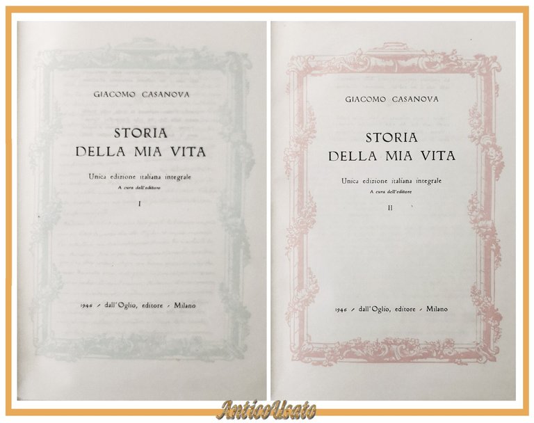 STORIA DELLA MIA VITA di Giacomo Casanova 2 Volumi 1946 Dall'Oglio Libro biograf