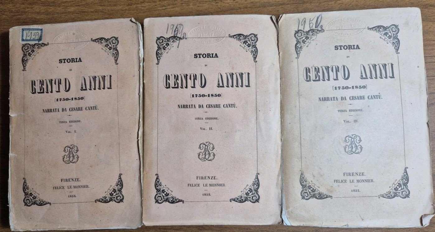 STORIA DI CENTO ANNI 1750 1850 di Cesare Cantù 1855 Le Monnier 3 LIBRI COMPLETO