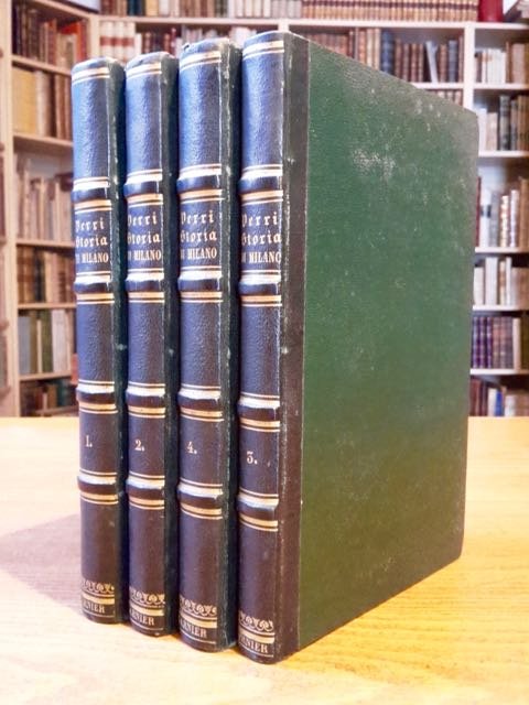 4 volumi in-8° (cm. 20,5), legatura coeva in m. pelle verde con titolo e decorazioni in oro ai dorsi, tagli a spruzzo; pp. 352 [2], 302 [2], 251 [1], XLII 319 [1b] in ottimo stato e fresche, con 5 tavole illustrative f.t. e 1 carta topografica ripiegata f.t.; antica firma alla prima carta bianca di ciascun tomo, impercettibili fioriture. Prima edizione che presenta la continuazione del Custodi. Cfr. Platner 208; Hoepli 969n. Ottimo esemplare. (NK3)