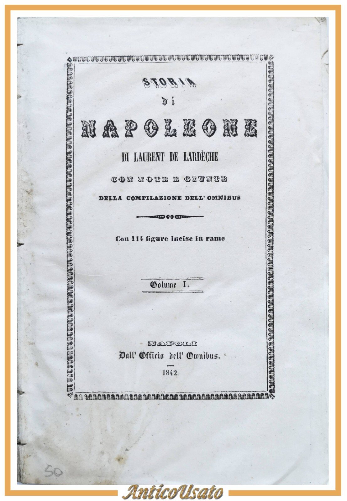 STORIA DI NAPOLEONE di Laurent De Lardeche volume I 1842 libro antico incisioni