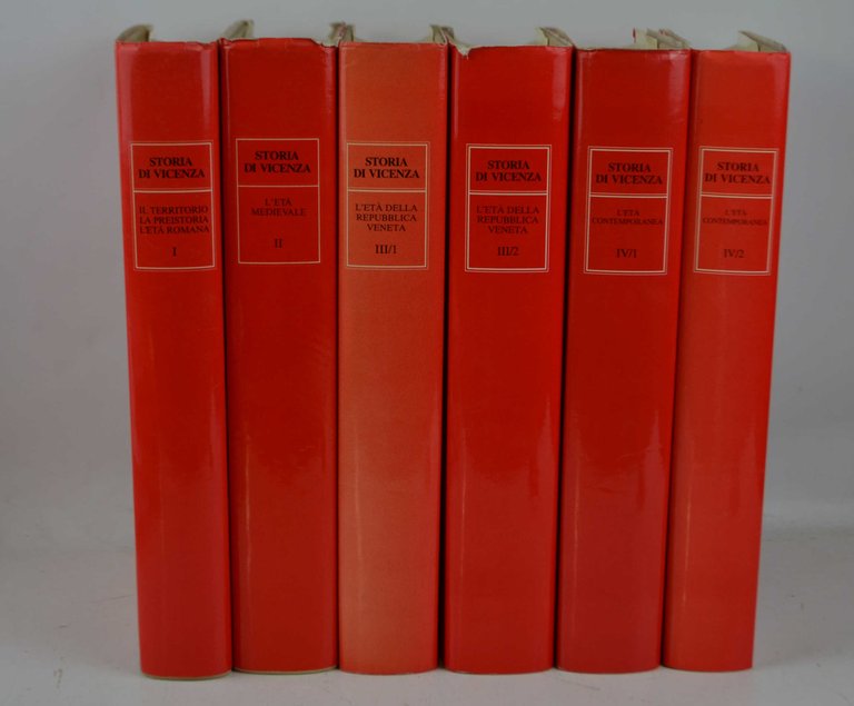 Sei volumi di cm. 27, pp. oltre 2000 complessive. Con molte illustrazioni, tavole a colori f.t. e piantine in tasca a parte. Legatura edit. in piena tela con sovracoperta. Esemplare in eccellente stato di conservazione. Opera così suddivisa: Vol. 1: Il territorio, la preistoria e l'Età Romana. Vol. 2: L'Età Medievale. Vol. 3 (tomo primo e tomo secondo): L'Età della Repubblica Veneta. Vol. 4 (tomo Primo e tomo secondo): L'Età Contemporanea.