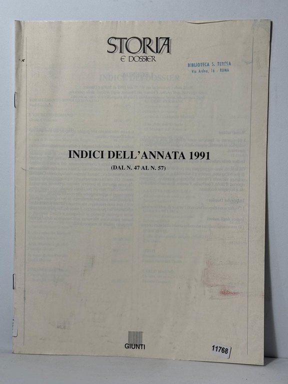 Storia e Dosser - Indici dell'Annata 1991 - (Dal n.47 al n.57)
