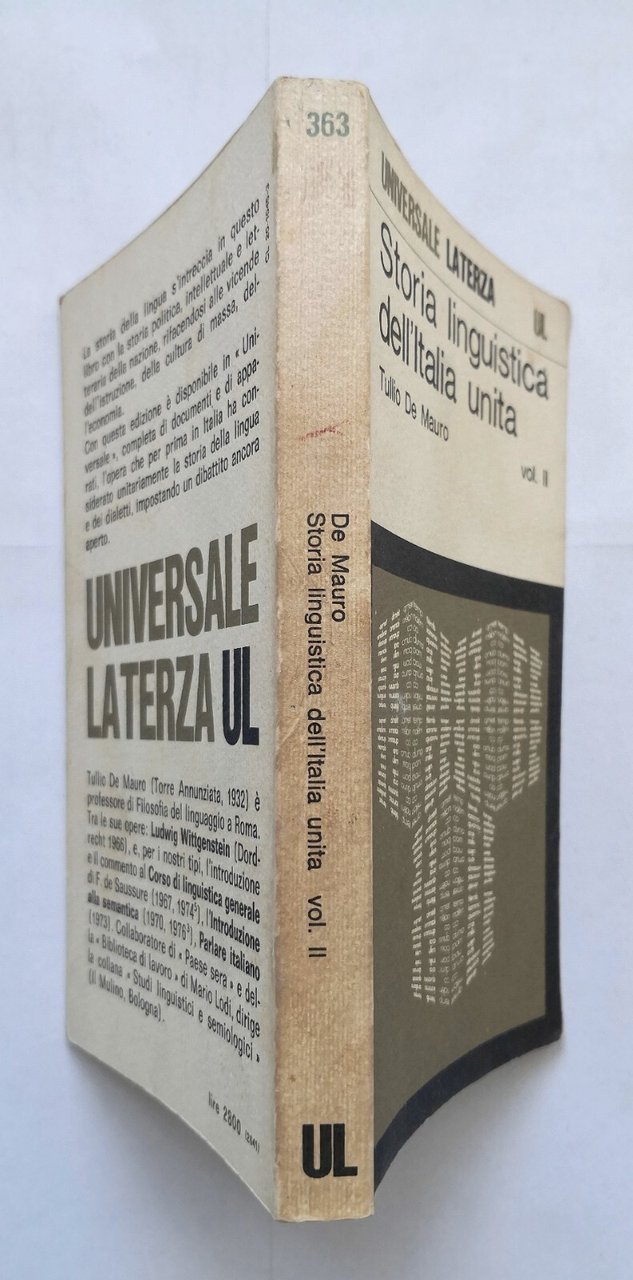 STORIA LINGUISTICA DELL'ITALIA UNITA di Tullio De Mauro volume II 1976 Libro