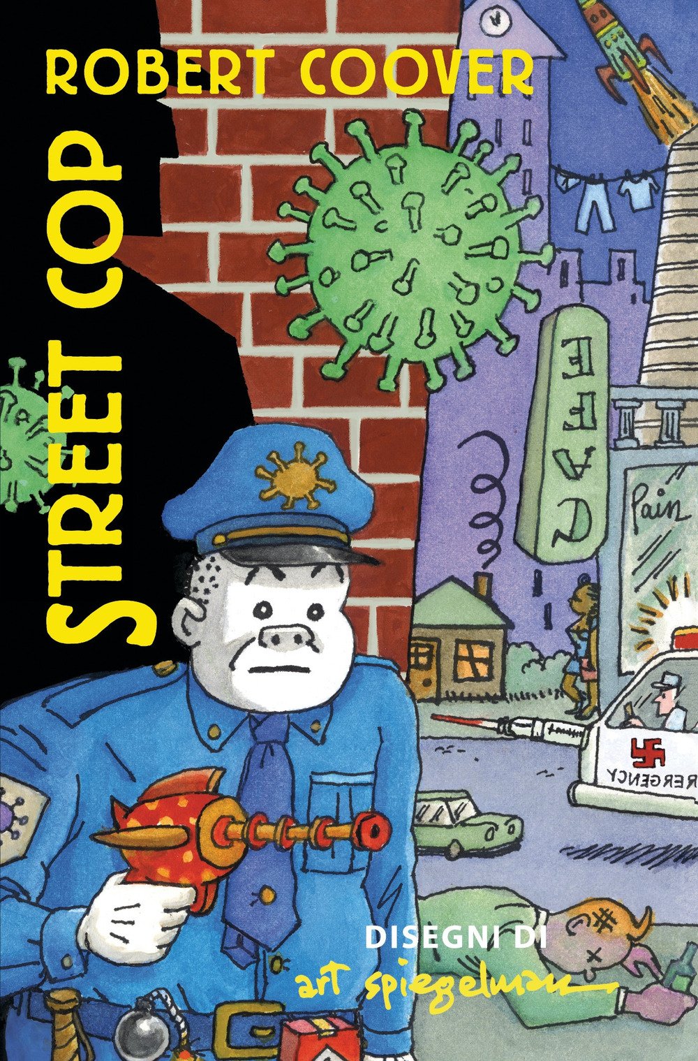 «La gente veniva fucilata e moriva come in passato, ma non necessariamente in quest'ordine». La penna di un grande scrittore - Robert Coover, uno dei maestri della letteratura americana - incontra il genio di Art Spiegelman in un gioiello di satira e trasgressione. In un futuro molto prossimo un poliziotto lotta per conservare la propria umanità tra robot-fattorini, spacciatori di droghe sintetiche e droni assassini.