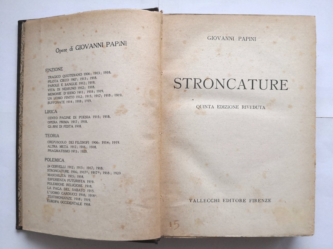 STRONCATURE di Giovanni Papini V edizione Vallecchi Libro 1920?