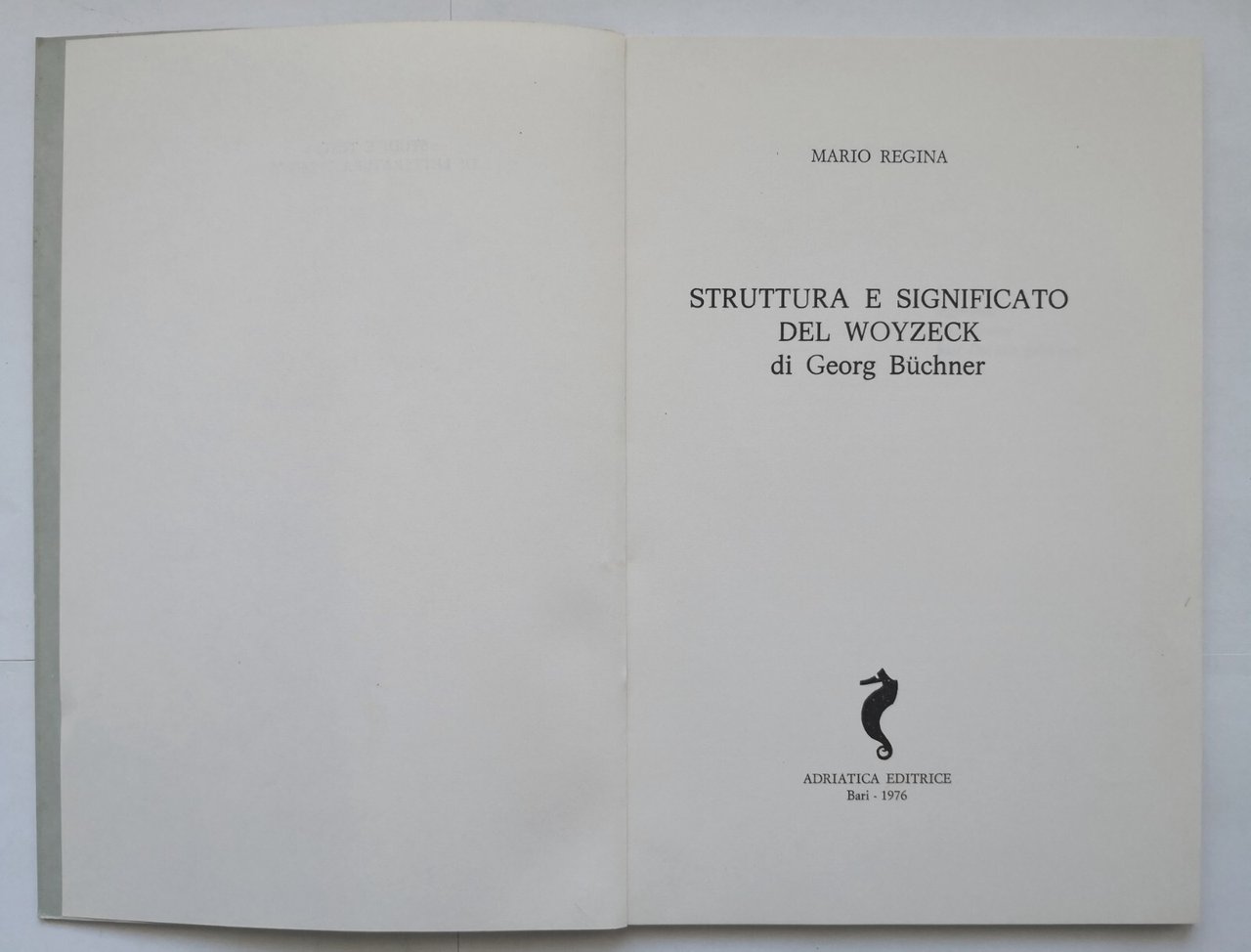 STRUTTURA E SIGNIFICATO DEL WOYZECK DI GEORG BUCHNER Mario Regina 1976 Libro