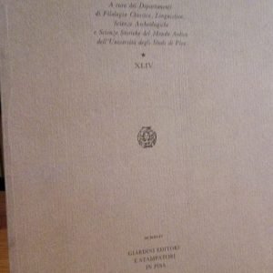 A cura dei Dipartimenti di Filologia Classica, Linguistica, Scienze Archeologiche e Scienze Storiche del Mondo Antico dell'Università degli Studi di Pisa, in-8, br.ed. con bandelle, pp.402, ottimo