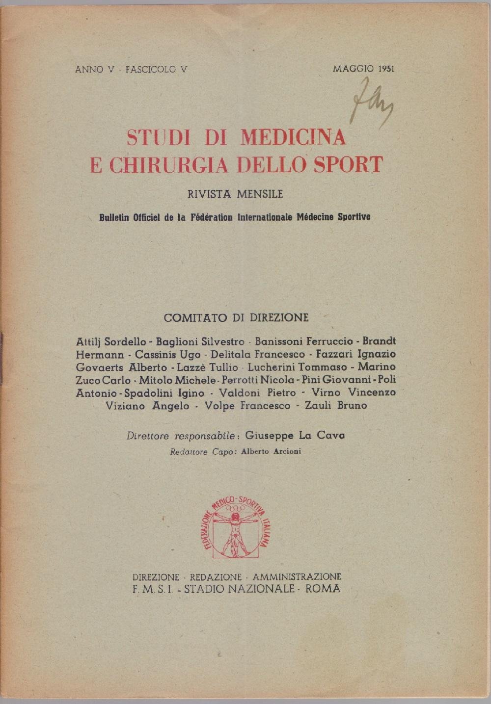 Studi di Medicina e Chirurgia dello Sport Anno V Fascicolo V- Maggio 1951