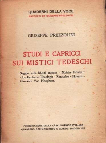 Studi e capricci sui mistici tedeschi. Saggio sulla libertà mistica - Meister Eckehart - La Deutsche Theologie - Paracelso - Novalis - Giovanni Von Hooghens.