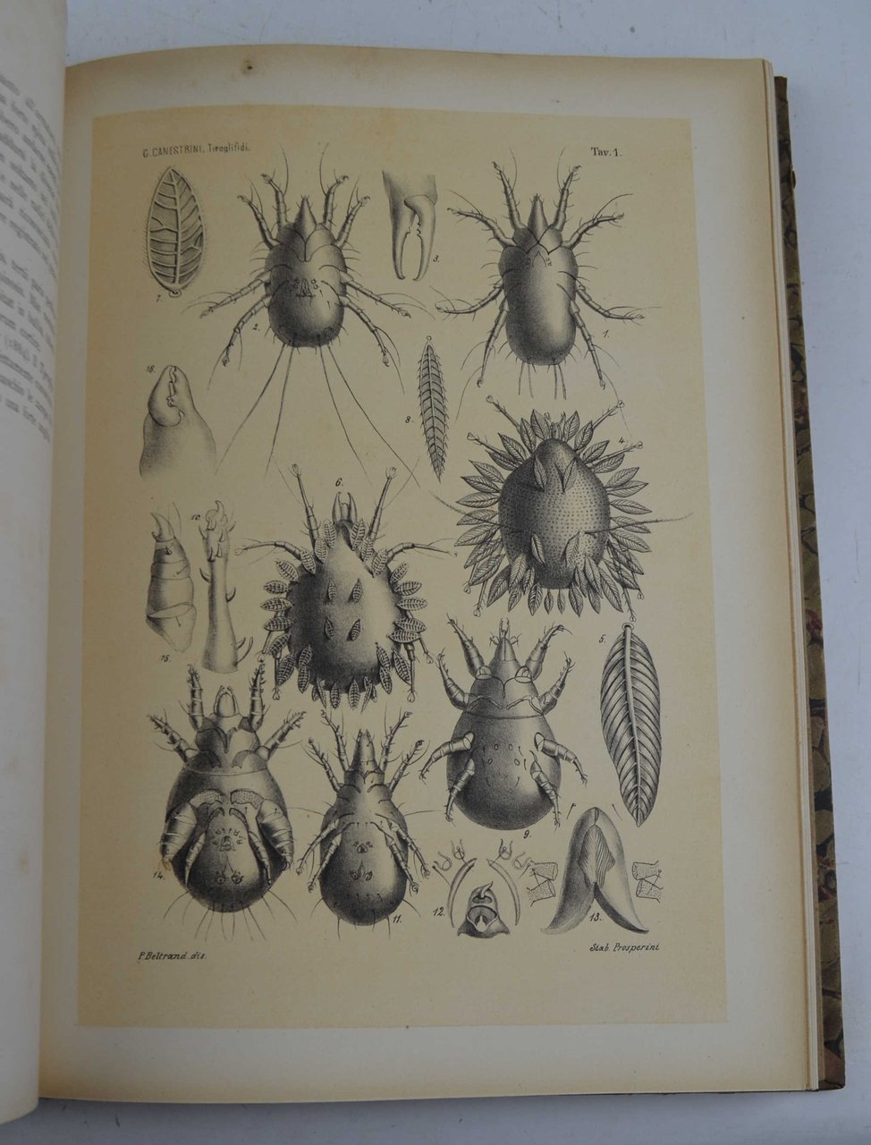 Cm. 32,5, pp. 500 ca. complessive. Con 2 tavole f.t. in litografia. Solida leg. del tempo in mezza pergamena, dorso liscio con titoli su tasselli. Esemplare genuino e ben conservato. Interessante raccolta di monografie.