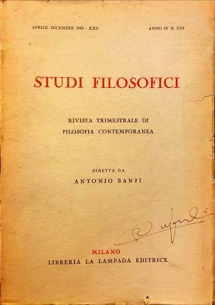 Studi filosofici. Anno IV N. 2-3-4. Rivista trimestrale di filosofia contemporanea. Diretta da Antonio Banfi.
