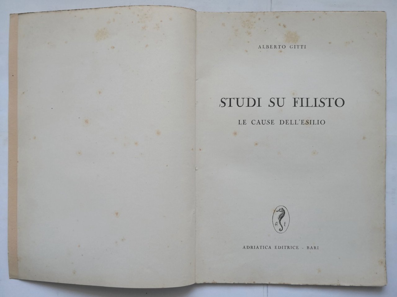 STUDI SU FILISTO le cause dell'esilio di Alberto Gitti 1953 Adriatica Libro