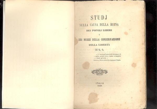 STUDI SULLA CAUSA DELLA RUINA DEI POPOLI LIBERI E SUI MEZZI DELLA CONSERVAZIONE DELLA LIBERTA'
