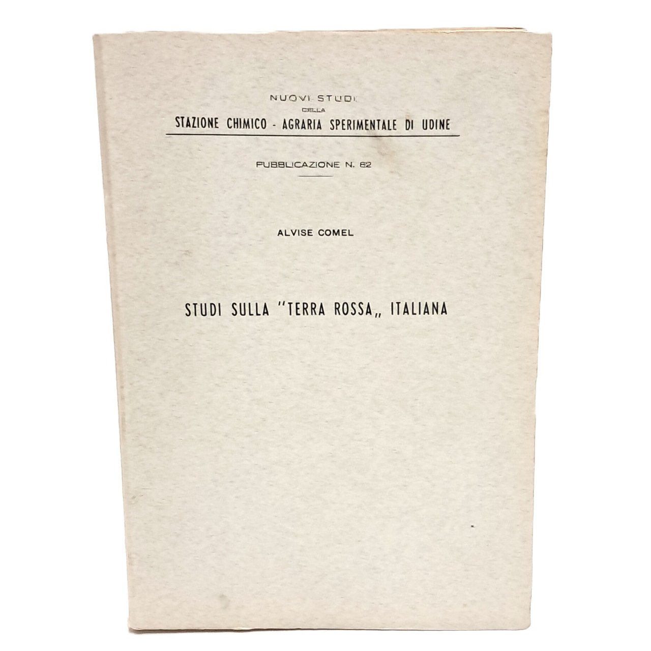 PRIMA EDIZIONE. Collana Nuovi studi della stazione chimico-agraria sperimentale di Udine, pubblicazione numero 82. Di difficile reperibilità Studio sulla terra rossa italiana frutto di oltre 40 anni di ricerca, a partire dal Friuli Venezia Giulia (il Carso) allargando sulle altre regioni italiani dove è presente questo particolare tipo di terreno di cui si menziona la composizione mineralogica e chimica nel capitolo introduttivo. In brossura. Pp. 360. Ottime condizioni.