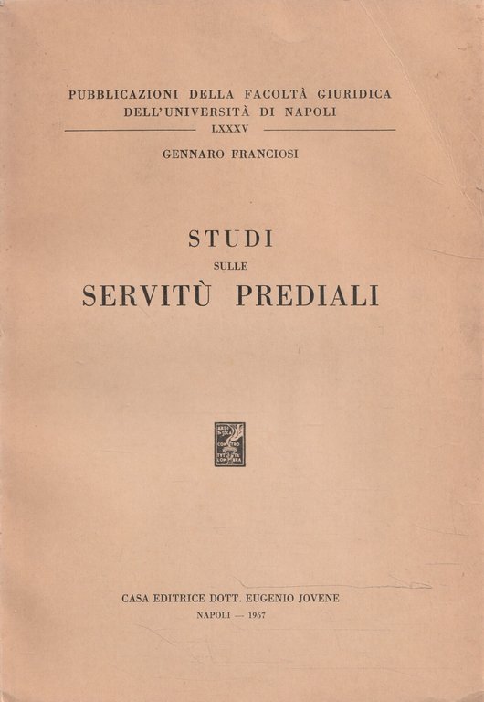 AP.8Brossura editoriale,in testa al front.: Pubblicazioni della Facoltà Giuridica dell'Università di Napoli, LXXXV, volume in buone condizioni, lievi segni di usura sulla copertina, interno in ottimo stato, legatura salda, margini superiori delle pagine ancora saldati 253 pagine circacopertina come da foto