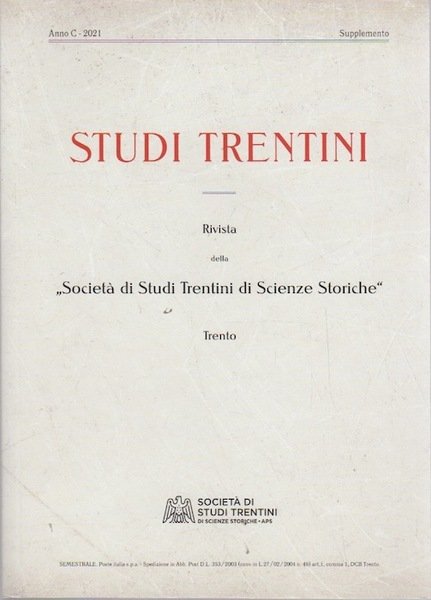 Studi Trentini. Rivista della "Società di Studi Trentini di Scienze Storiche", Trento. ANNO C - Supplemento.