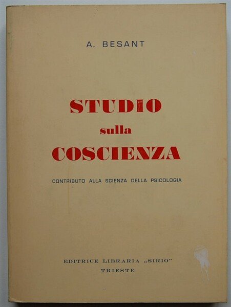 STUDIO SULLA COSCIENZA. CONTRIBUTO ALLO STUDIO DELLA PSICOLOGIA.