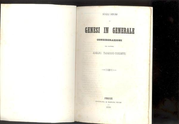SUGLI STUDI DI GENESI IN GENERALE. CONSIDERAZIONI