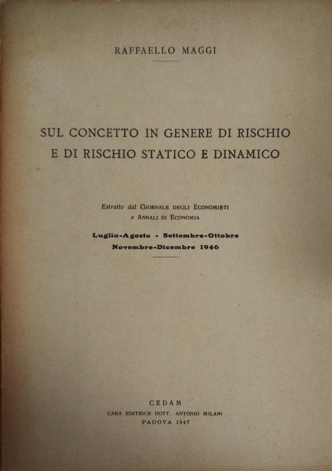 SUL CONCETTO IN GENERE DI RISCHIO E DI RISCHIO STATICO E DINAMICO