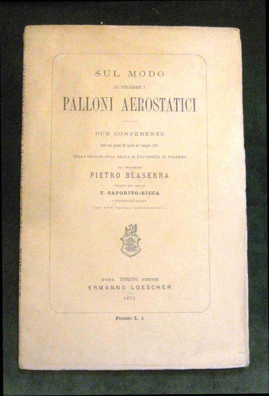 Sul modo di dirigere i palloni aerostatici. Due conferenze fatte nei giorni 28 aprile e 5 maggio 1872 nella grande aula della R. Università di Palermo Raccolte per cura di V. Saporito-Ricca e rivedute dall'Autore. Con una tavola litografata