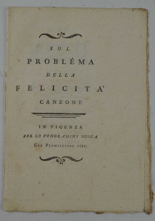 Cm. 19,5, pp. xvi. Con un agraziosa testata in xilografia. Senza legatura (come d'origine?). Esemplare in barbe e ben conservato.
