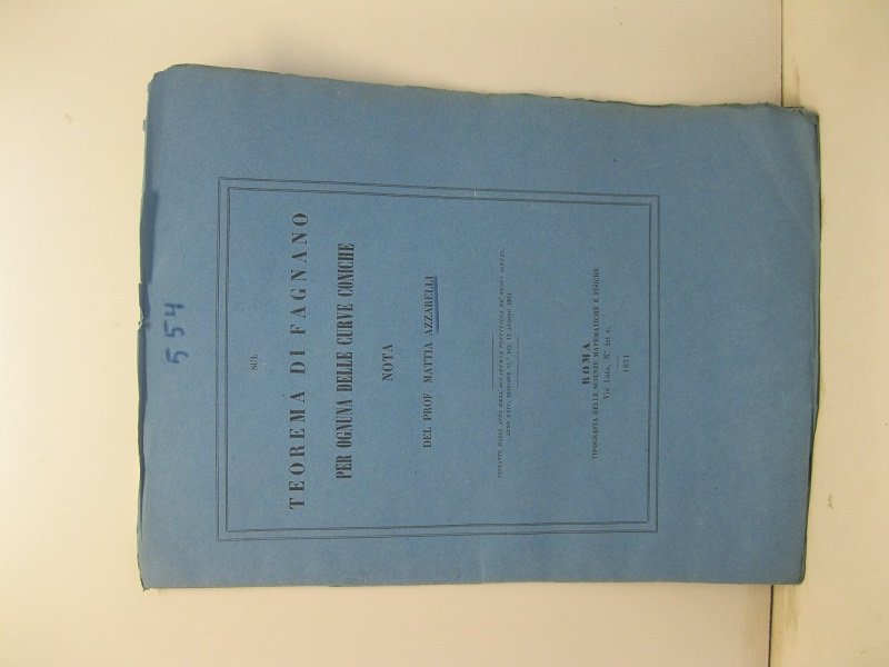Sul teorema di Fagnano per ognuna delle curve coniche. Nota. Estratto dagli Atti dell'Accademia Pontificia de' Nuovi Lincei.