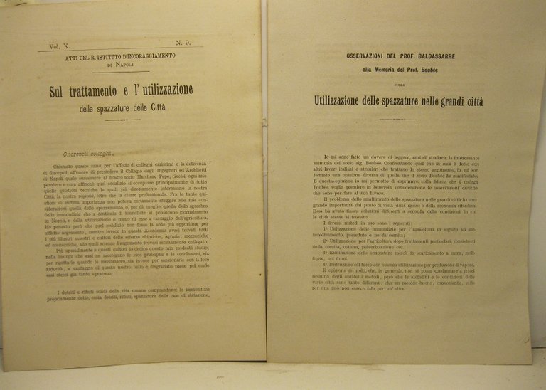 Sul trattamento e l'utilizzazione delle spazzature delle citta' SEGUE Osservazioni del Prof Baldassarre alla Memoria del Prof. Boube'e sulla utilizzazione delle spazzature nelle grandi citta' SEGUE Dello sgombro e della utilizzazione delle spazzature della citta' di Napoli