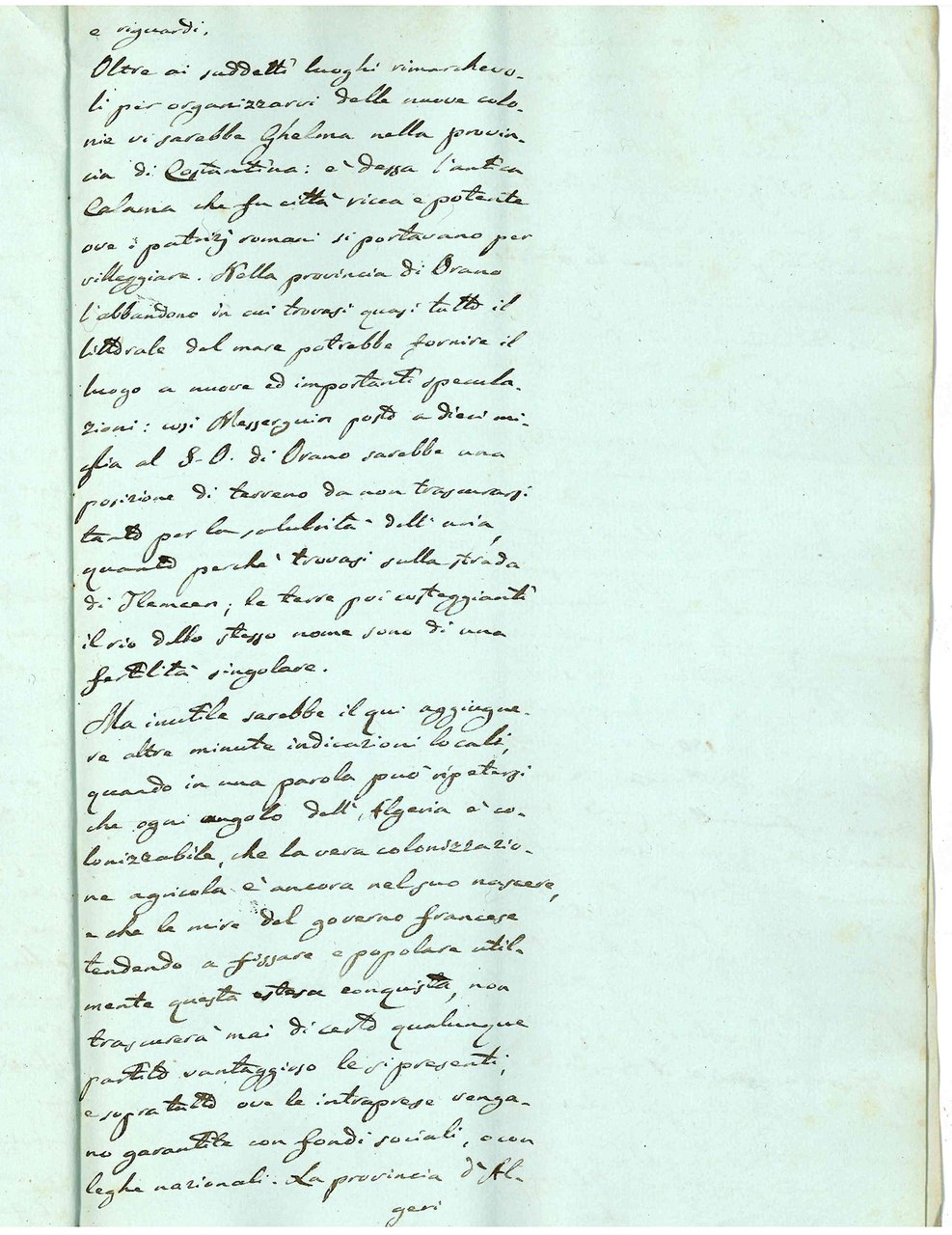 Alla carta I2r si legge: “Situazione attuale delle Colonia nell'Algeria; utilità che le Nazioni Europee potrebbero ottenere da questa colonizzazione”.