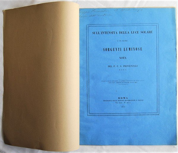 Tipografia delle Scienze Matematiche e Fisiche, 1871. In-4, brossura, pp. 6. Estratto dagli Atti dell'Accademia Pontificia de' Nuovi Lincei. In ottimo stato