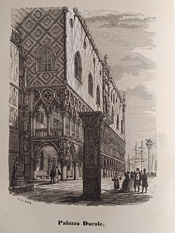 In-8° (cm. 24), legatura coeva in mezza pelle bordeaux ad angoli, dorso a nervi con titolo, filetti e fregi alle nervature in oro (tracce d'uso), piatti marmorizzati (alcune abrasioni); pp. XXIII 529 [3] in stato molto buono; con 10 tavole fuori testo protette da velina (di cui una doppia) e 70 vignette xilografiche nel testo; illustrazione della Giustizia incisa al frontespizio; eleganti testatine e capilettera incisi; lievi e sporadiche fioriture, collocazione impressa al risguardo bianco. Prima edizione di quest'opera «assai pregevole e ricercata» [Lozzi II, 6127] dello storico e critico d'arte Pietro Selvatico, che fu anche docente all'Accademia di Belle Arti a Venezia. Cfr. Cicogna 4653; Fossati Bellani II, 2345. Esemplare molto buono. (NF9)