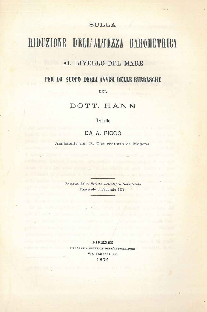 Sulla riduzione dell'altezza barometrica al livello del mare per lo scopo degli avvisi delle burrasche
