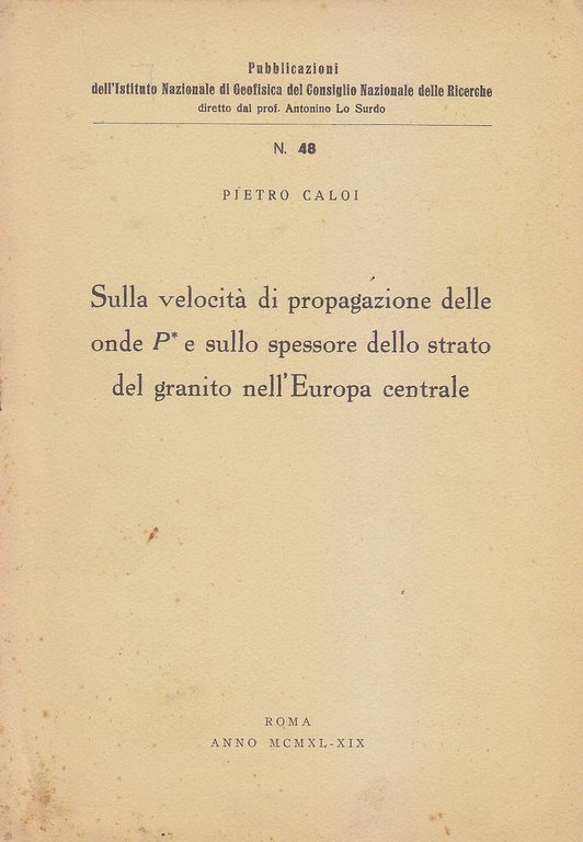 SULLA VELOCITA' PROPAGAZIONE ONDE SPESSORE STRATO GRANITO EUROPA CENTRALE libro