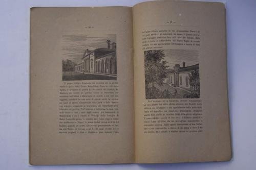 Cm. 22, pp. 50 (2). Con 6 graziose incisioni in xilografia nel testo raffiguranti lo stabilimento. Bross. orig. a stampa. Dorsetto ben rifatto. Carte un po' brunite, ma ben conservato.