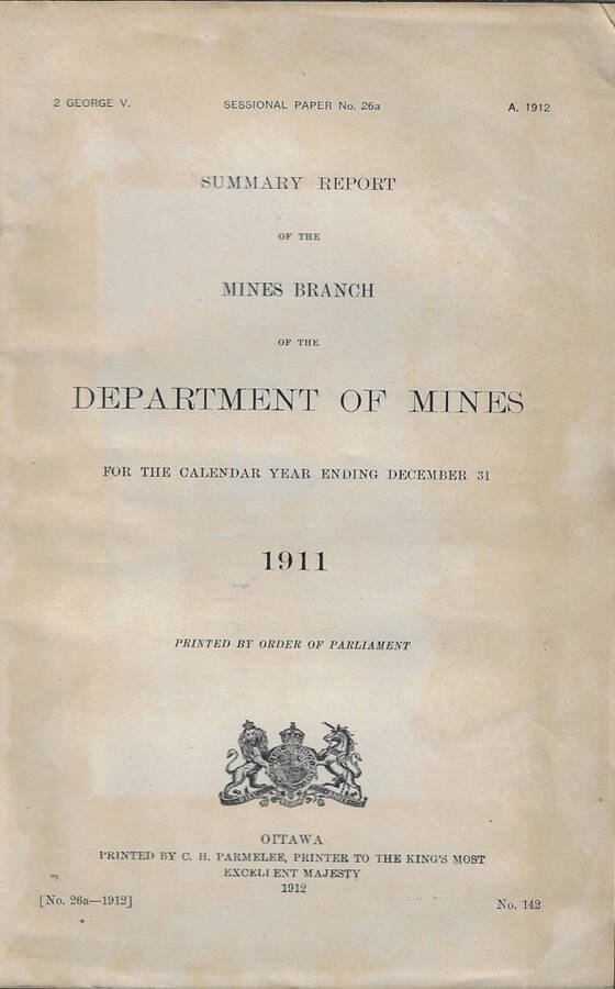 Summary report of the Mines Branch of the department of mines for the calendar year ending december 31 1911