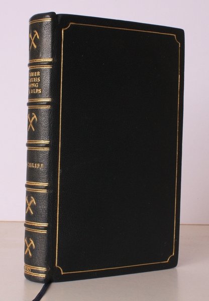 8vo., First Edition, with chromolithographed frontispiece, 3 chromolithographed plates (some minor age-soiling at margins; one plate rather more heavily soiled) and 3 maps coloured in blue; handsomely bound in full navy crushed morocco, sides with gilt frame borders, back with raised bands, second and fourth compartments ruled and lettered in gilt, all other compartments tooled with ice-axes in gilt, gilt top, hand-made endpapers, original backstrip gilt mounted on new and separate leaf at front, ribbon marker, a most attractive copy ideal as a gift or for presentation. The author was President of the Alpine Club 1875-77. EXTREMELY SCARCE. Neate *375.