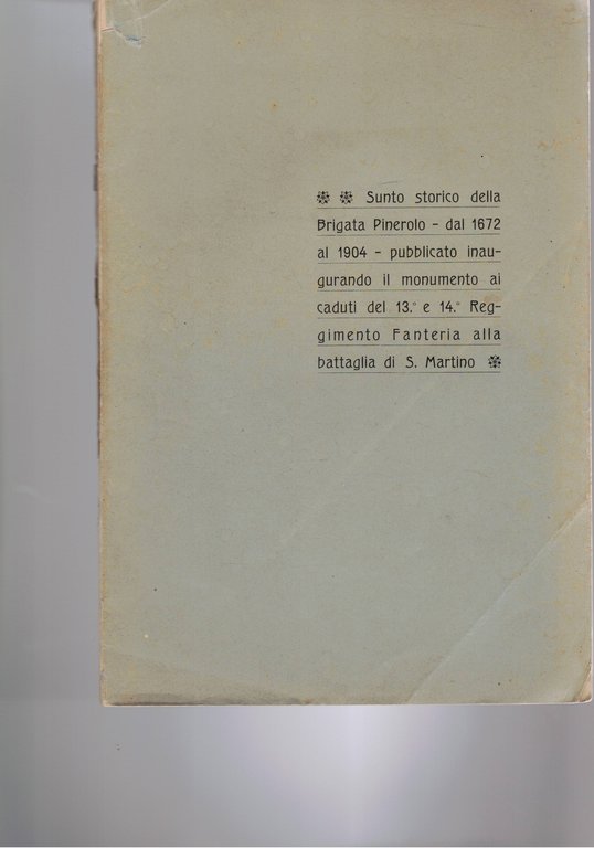 Sunto storico della Brigata Pinerolo dal 1672 al 1904 pubblicato inaugurando il monumento ai caduti del 13 e 14 reggimento fanteria alla battaglia di S. Martino.