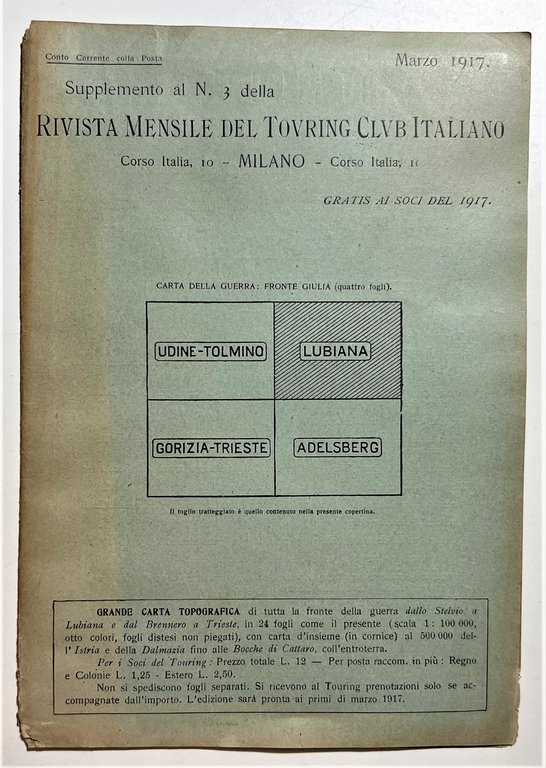 Suppl. Rivista Touring Club Italiano - Grande Carta Topografica Lubiana 1917