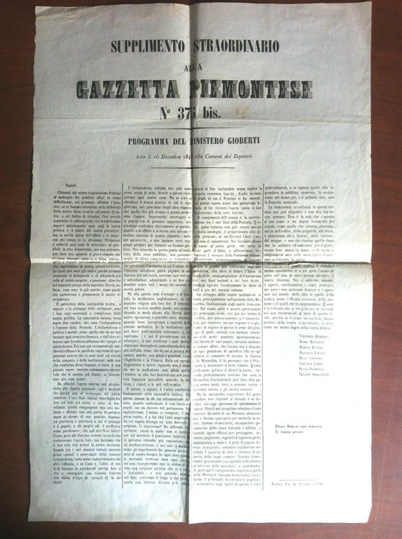 Supplemento con programma del Ministro Gioberti Gazzetta Piemontese 1848- E10653