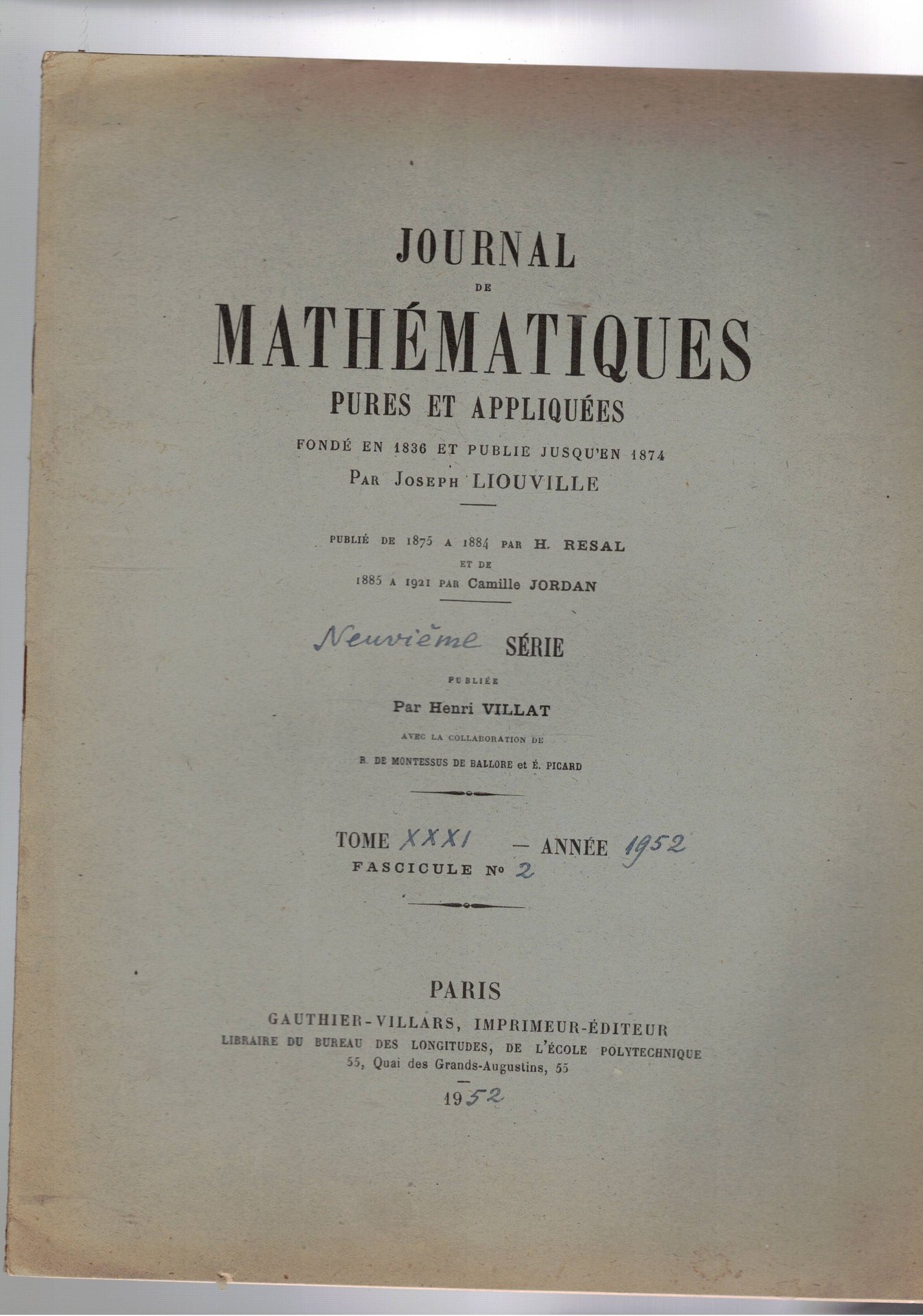 Sur l'approximation des fonctions continues. Estratto da Journal de mathematiques Tomo 31 del 1952.