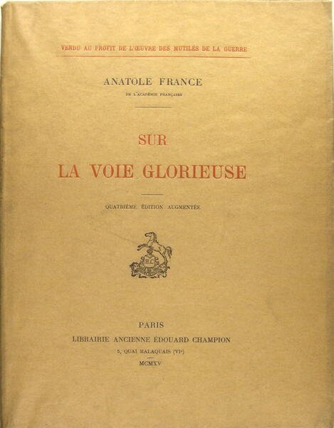 Paris Librairie Ancienne Edouard Champion sur les presses de Protat Frères Macon, Mise en vente au profit de "Oeuvre du Vêtement du Prisonnier de Guerre", 1915, quatrième édition augmentée, in/4 broché, couverture remplié, 91 pages. Exemplaire non coupé.